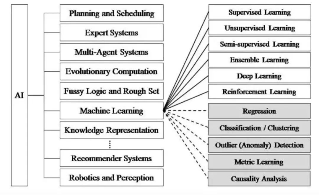 上世纪50年代,就有人工智能的概念,后来也有一些较基础的应用,比如国际象棋。但到了70年代,由于硬件性能的制约,以及训练数据集的匮乏,使得人工智能经历了一段低谷。人工智能包括了很多,比如机器学习、调度算法、专家系统等。到了80年代才开始出现更多机器学习的应用,比如利用算法来分析数据,并进行判断或预测。机器学习包括了逻辑树、神经网络等。而深度学习,则是机器学习中的一种方法,源于神经网络。