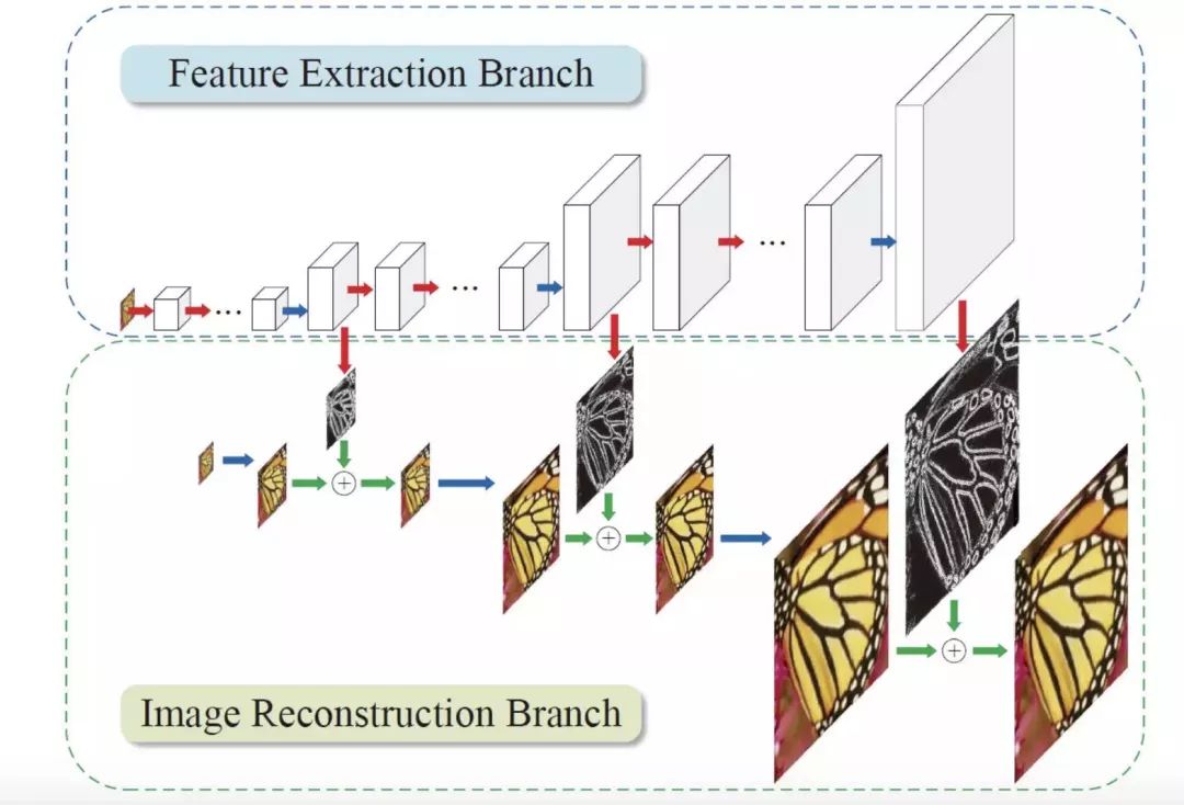 这是2016年获奖的一个模型。我们做视频编解码的都知道,图像之间是存在残差的。它认为原始的低分辨率图片与高分辨率图片之间,低频分量几乎一样,缺失的是高频分量,即图片细节。那么训练的时候,只需要针对高频分量进行训练就行了。
