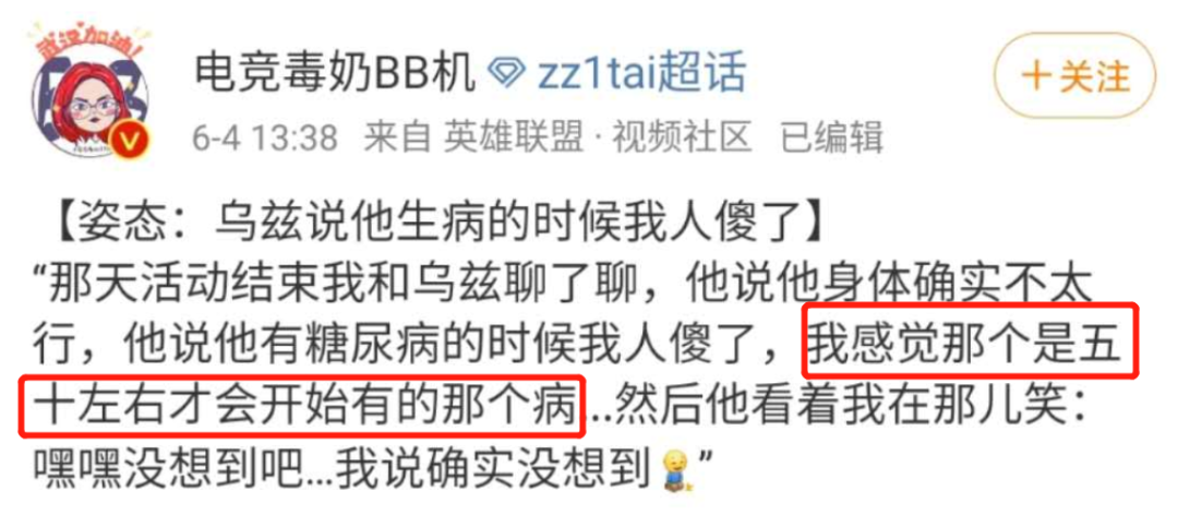这两天里,在看到Uzi因病退役消息后瞬间慌了的各位,应该或多或少都冒着被“癌症起步”吓坏的风险,去“千度”了一下糖尿病到底有什么影响。