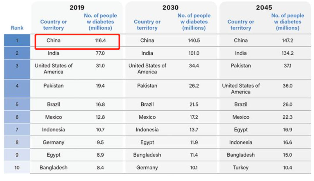 根据国际糖尿病联盟(IDF)在2019年发布的全新糖尿病地图,全球共有4.63亿糖尿病患者。而中国有1.164亿患者,排第一位。