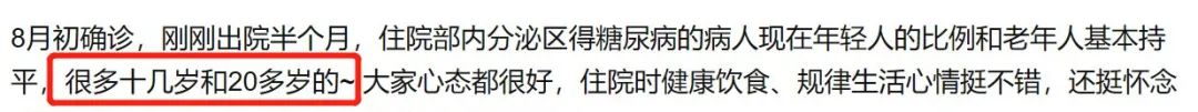 根据一些糖尿病患者的观察与自述,在医院住院部的内分泌区,得糖尿病的年轻人与老年人的比例基本持平。