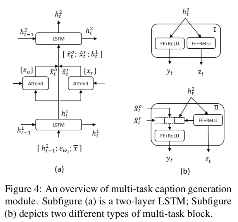 在生成过程中,论文提出联合预测单词和标签序列,描述中的每个单词都会被分配一个标签,也就是object、predicate或none。使用双层lstm分别进行对齐和解码: