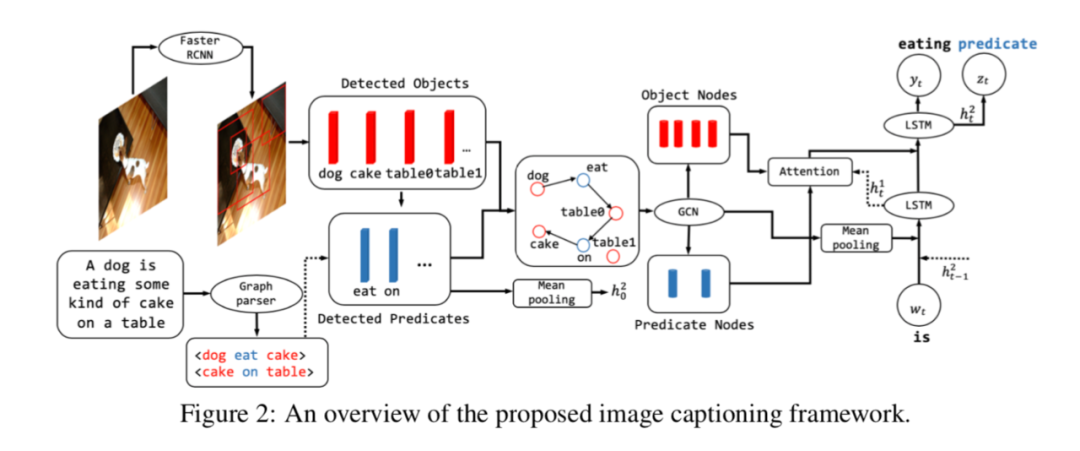 图像字幕生成需要有一个合适的语言和图像的语义表示。为了解决忽略重要的断言(predicates)以及断言和物体对之间连接的模糊性,文章提出了一种新颖的图像字幕架构,以探索字幕中可用的语义,并利用它来增强图像的表示和字幕的生成。模型首先使用弱监督多实例学习来构造字幕引导的视觉关系图,引入有益的归纳倾向。然后通过相邻节点和上下文节点以及它们的文本和视觉特征来增强表示。在生成过程中,该模型进一步结合视觉关系,使用多任务学习来联合预测单词和相对应的标记序列。大量的实验表明提出的框架显著优于基准。