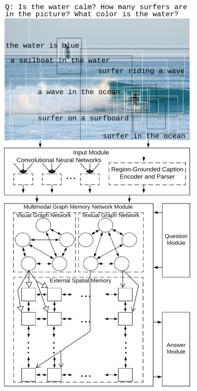 模型主要有四个模块:输入、问题、多模态图记忆网络和应答模块。