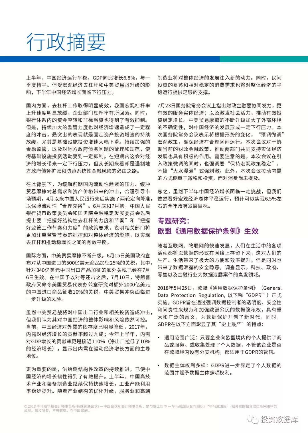 毕马威中国今日发布2018年三季度《中国经济观察》报告(以下简称“报告”)。报告表明显示,上半年中国经济运行平稳,GDP同比增长6.8%,与一季度持平。毕马威预测,下半年中国经济增长虽然面临一定挑战,但总体将维持平稳运行。