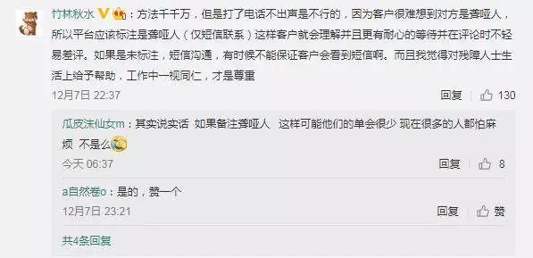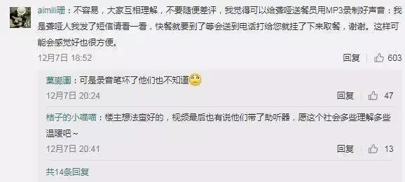 网友“hey你爱吃青椒吗”对于自己当时没有耐心感到十分自责,所以在网上呼吁大家如果遇到这种情况,最好检查一下有没有被忽视的短信,不要急着发脾气给差评,伤害到这些努力工作的特殊人群。