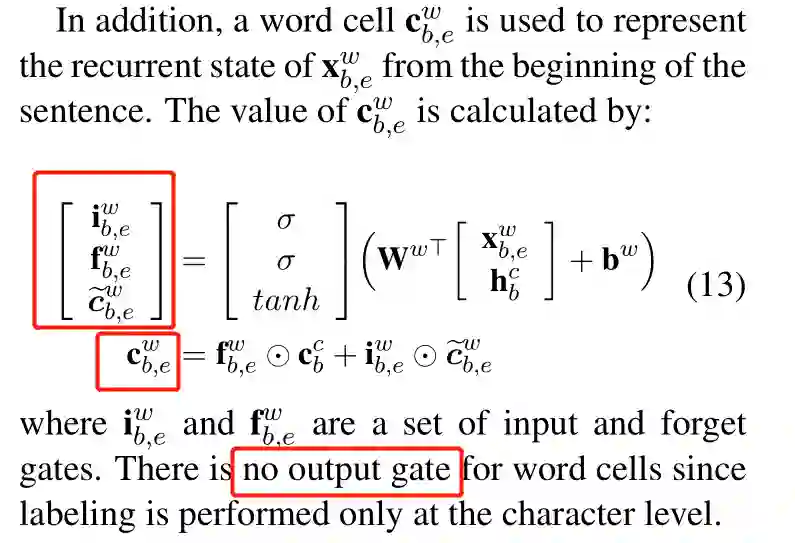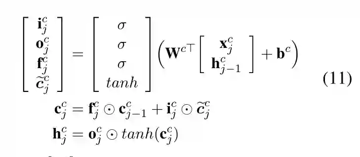 我们首先来看一下字符的编码,其实这部分还是采用的标准的LSTM来获取序列信息,与以往一致,从下面的公式中,我们也不难发现没有变化。