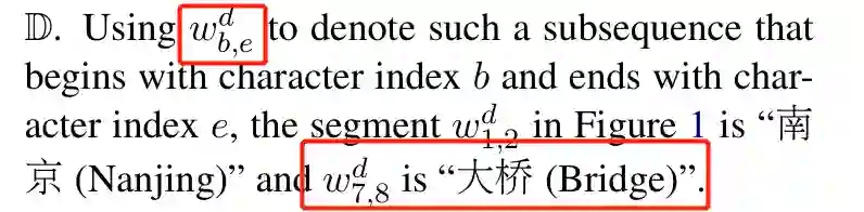 上面的公式仅仅是计算了一个词的cell信息,而我们通过上面的阐述能够得知,在某一个字符处,可能存在多个词序列,比如在“桥”这个字符处,可以是单字桥,可以是大桥或者是长江大桥这样的词。