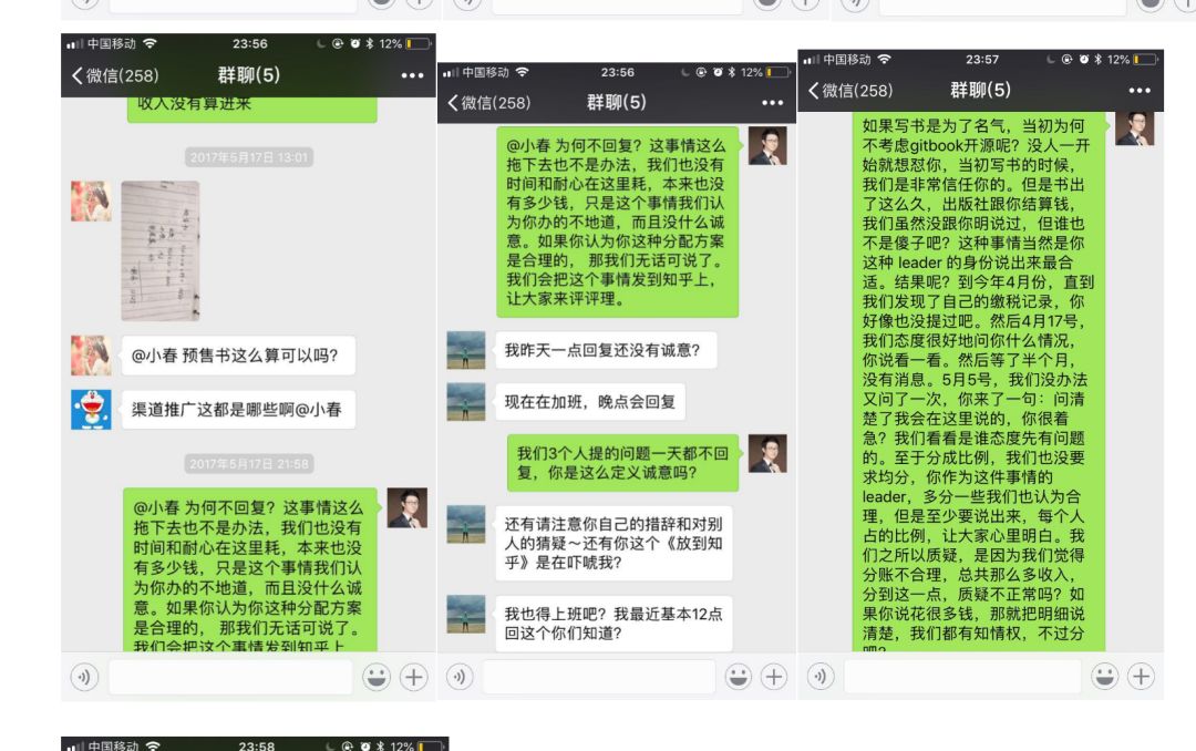 据了解,张某某是原滴滴出行公共前端团队负责人。该程序媛表示,其对外宣称是热爱摩拜来到这里,真实原因是之前在滴滴和团队的人闹矛盾而走,滴滴团队共同写了一本书,到结账的时候,张某某一个人独吞 80000 元左右的收入,只给团队的几个人一共分了 8000 元。而在今年,这个套路同样用在了摩拜内部,张某某利用摩拜小程序的 IP,让小程序团队共同出了一本掘金小册,并表示是为了扩大团队影响力,实则是为了挣钱,在摩拜和滴滴都是拿着团队的共同的劳动成果来名利双收。