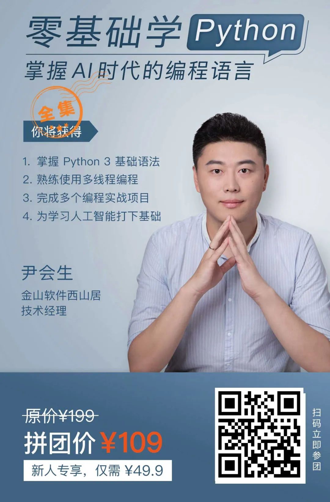 尹老师从业十余年,主要以 Python 进行编程和开发,比如使用 Python 开发了大数据采集和分析平台,使用基于 Python 的 Web 框架为公司搭建了基础架构统计工具。