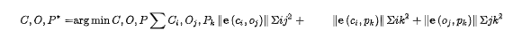 分别代表相机-物体,相机-点,物体-点的约束。