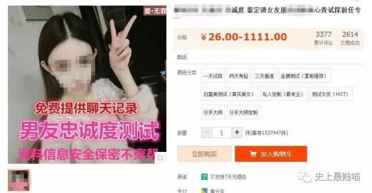 最近,雷锋网宅客频道编辑小李不小心看到了一些奇怪的信息:XX花了26块在X宝买鉴贞服务测试男朋友,结果发现他已经结婚半年了……