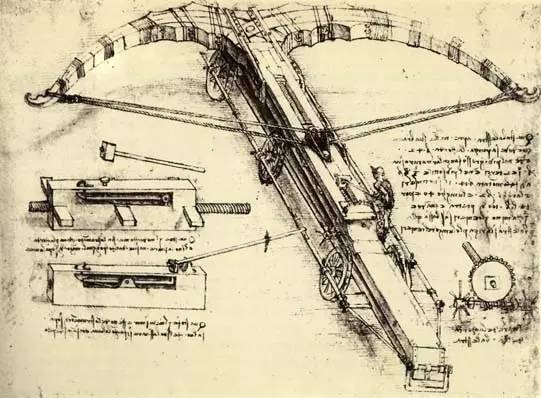 尽管后来达·芬奇从书上学习了诸多军事知识,确实画过许多构思巧妙的军事设备,有的甚至画了超过三十张图,而且细致、精确地画出了各个部位的构件,但其中只有一件最终从他的笔记本走上了战场。在达·芬奇的一生中,有很多这样只停留在构思阶段的从未完成的作品,包括绘画、纪念碑和发明。