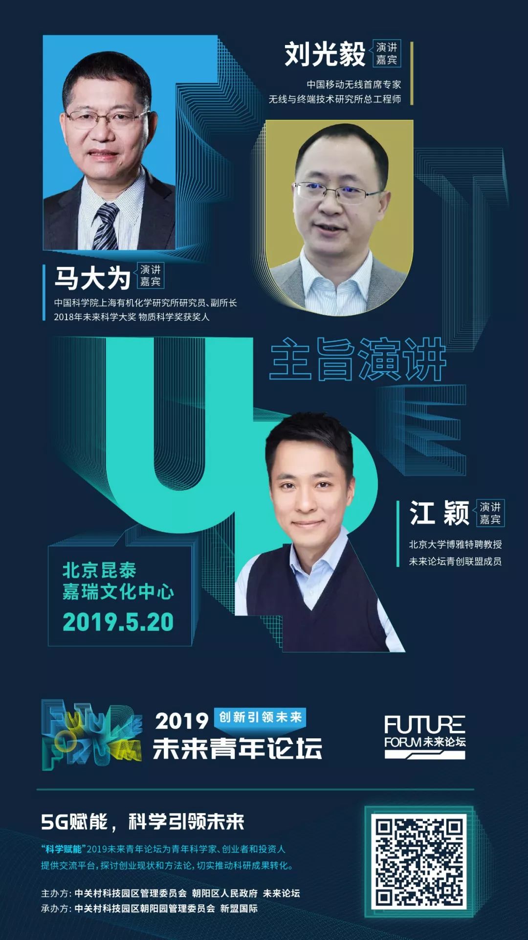2019年5月20日未来青年论坛邀请了多位优秀科学家、艺术家、具有代表性的知名企业和投资界精英,共同围绕人工智能、基础科研等主题进行深入探讨。中国科学院上海有机化学研究所研究员、副所长、2018年未来科学大奖-物质科学奖获奖人 马大为,中国移动无线首席专家、无线与终端技术研究所总工程师 刘光毅,北京大学博雅特聘教授、未来论坛青创联盟成员 江颖 三位分享嘉宾亲临现场发表主旨演讲。