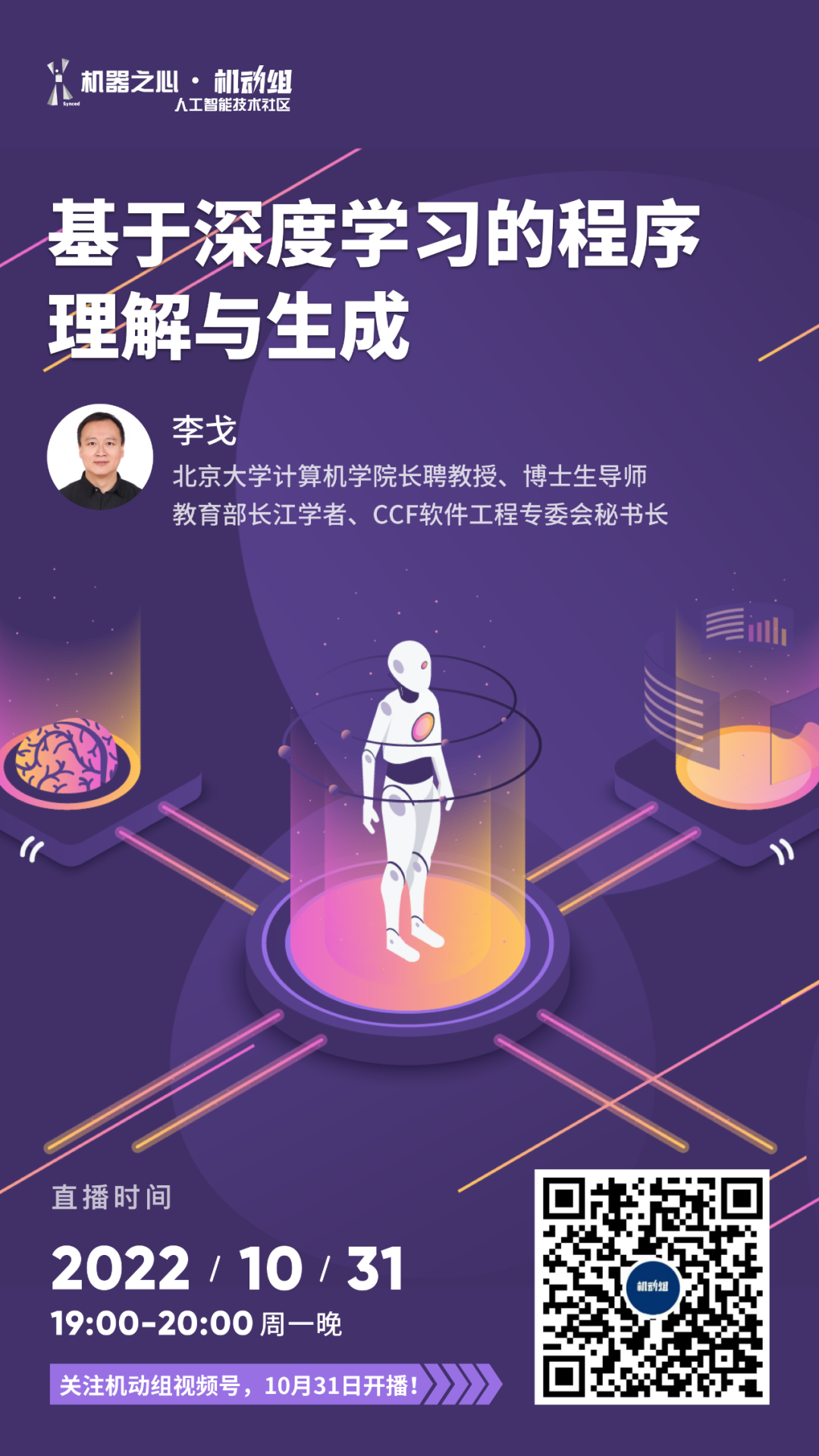 为了进一步了解深度学习在这一领域的应用和存在的问题,北京时间 10 月 31 日 19:00-20:00,机器之心最新一期线上分享邀请到了北京大学计算机学院长聘教授、博士生导师李戈,他将带来主题为《基于深度学习的程序理解与生成》的精彩分享。