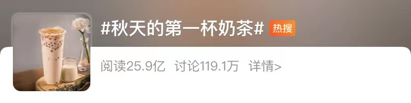 “秋天的第一杯奶茶”可谓是茶饮界玩得最成功的营销,这一句话甚至推动了整个茶饮行业的销量,威力不容小觑。