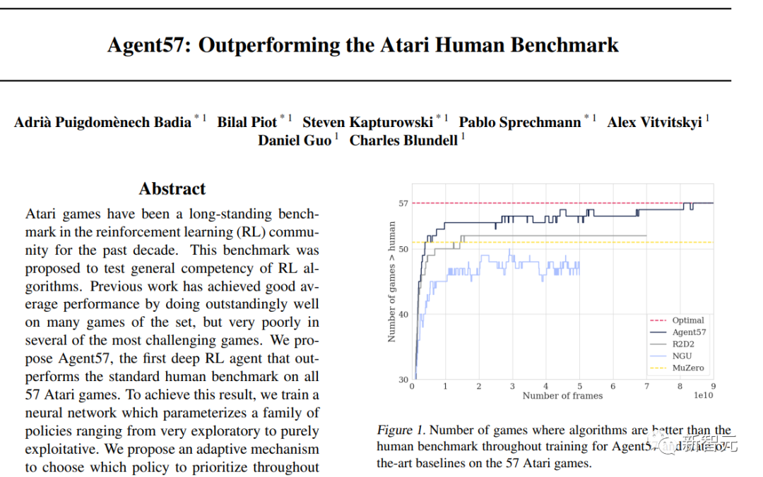 Agent57是第一个在所有57个Atari游戏中获得高于人类平均水平分数的算法,通用性顶满,这是DeepMind在2020年搞出来的。