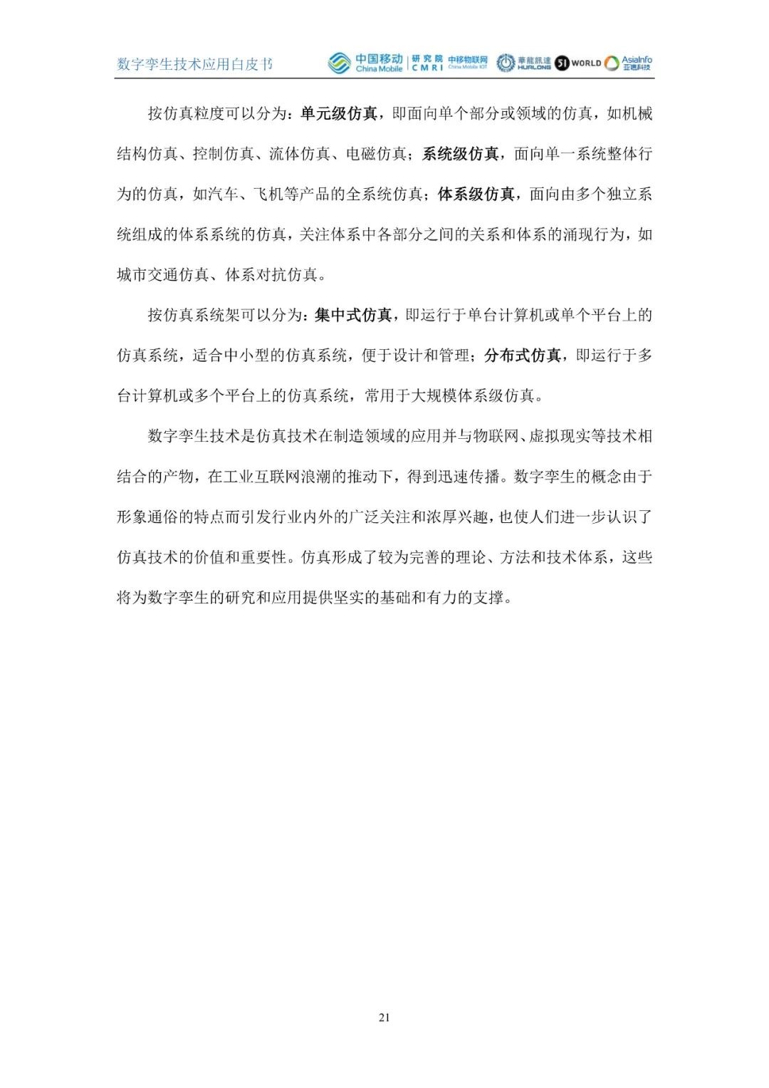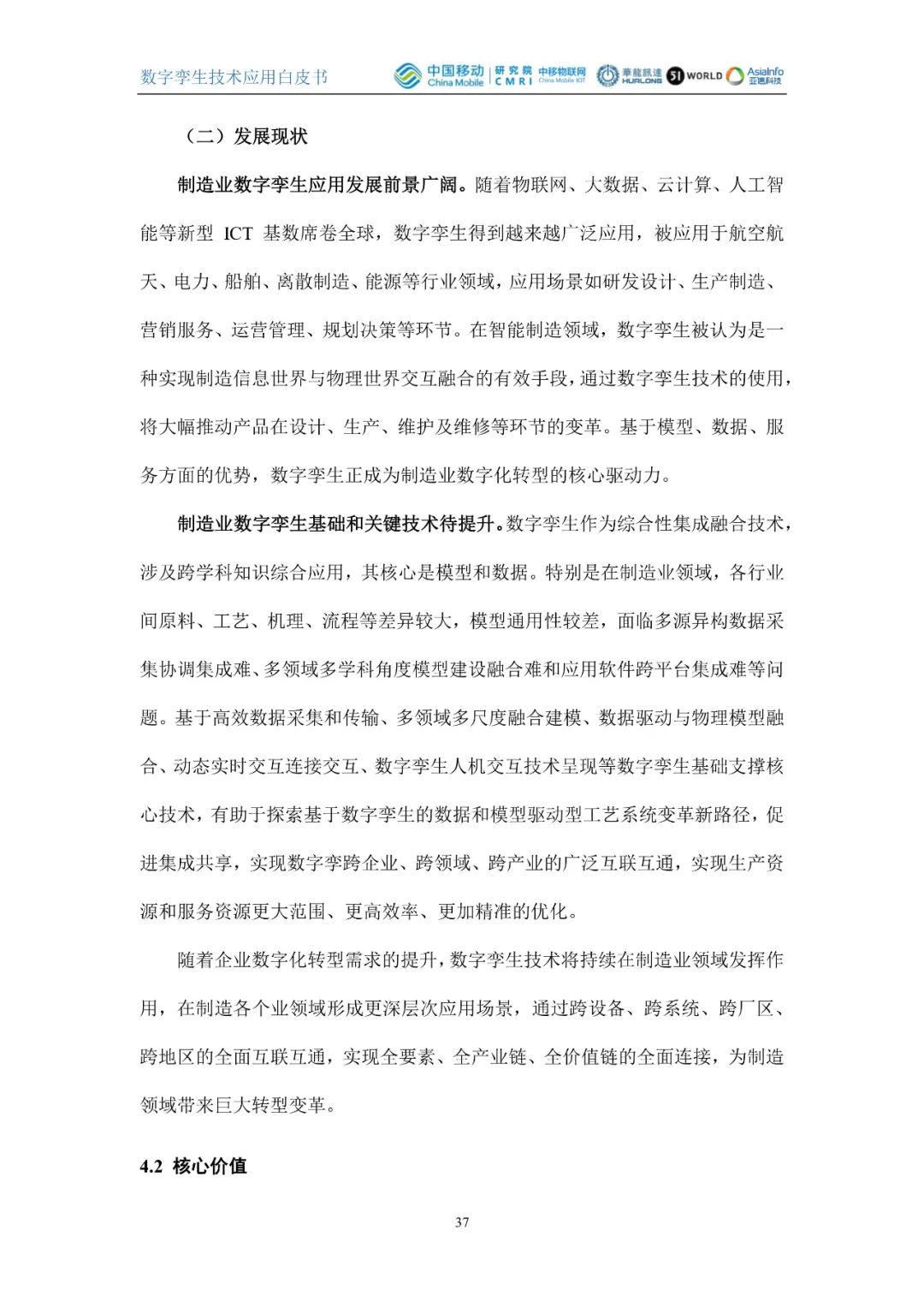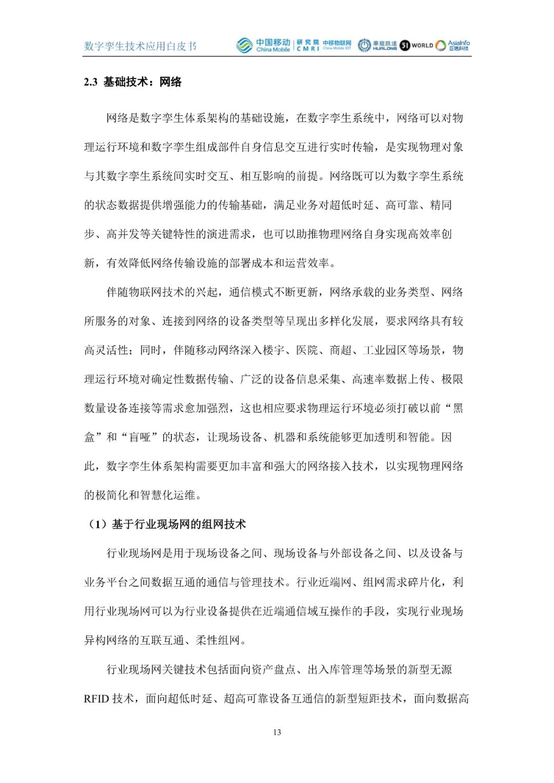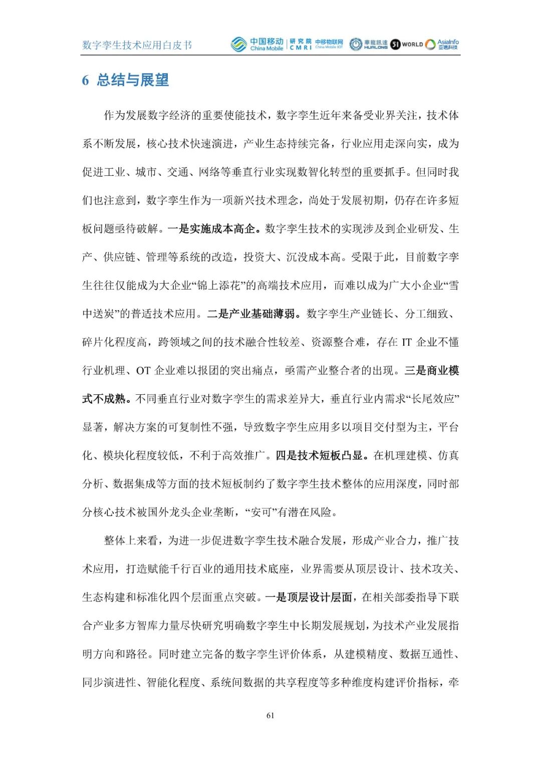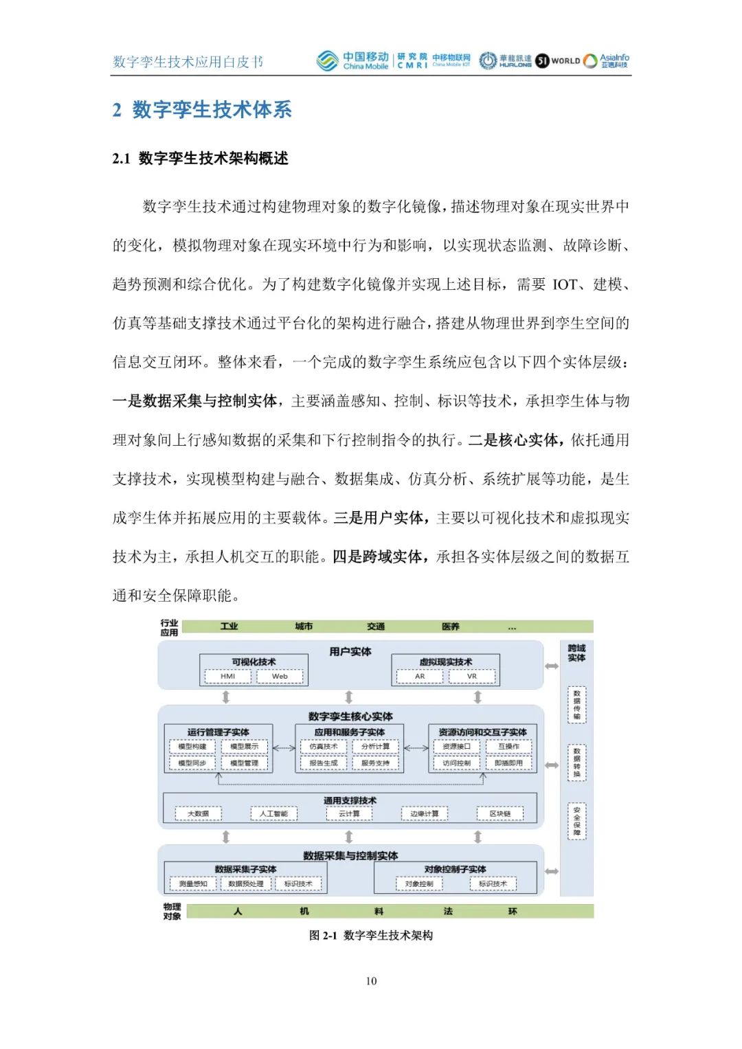 《数字孪生技术应用白皮书(2021)》聚焦数字孪生关键技术和行业应用发展,梳理数字孪生整体发展情况,深入分析技术体系和典型垂直行业应用场景,旨在为产业界在规划实施数字孪生相关应用时提供参考借鉴,助力数字孪生技术演进和产业发展。