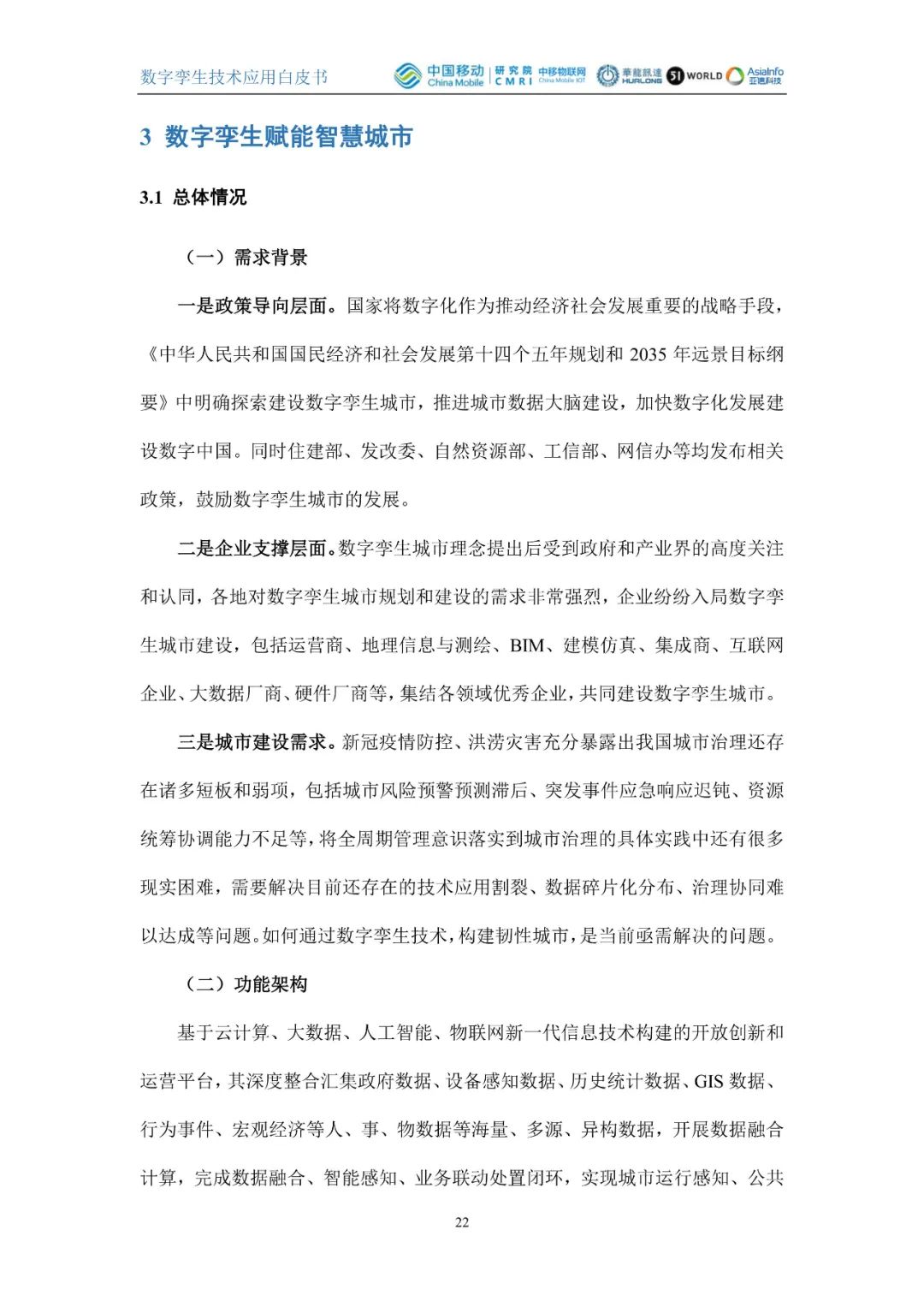 随着经济社会数字化转型的持续推进,数字孪生逐渐成为产业各界关注的热点技术。数字孪生起源航天军工领域,近年来持续向智能制造、智慧城市等垂直行业拓展,实现机理描述、异常诊断、风险预测、决策辅助等应用价值,已成为助力企业数字化转型、促进数字经济发展的重要抓手。