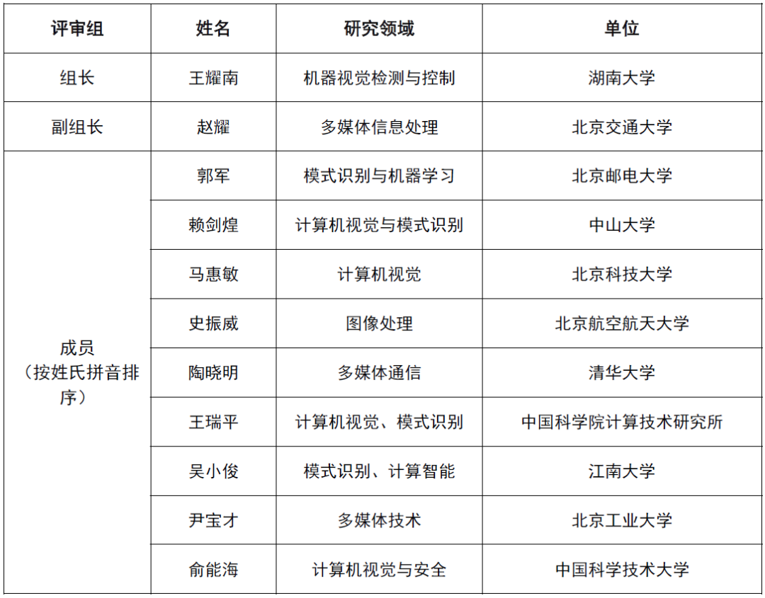 中国图象图形学学会推荐第八届中国科协青年人才托举工程项目终评遴选专家名单