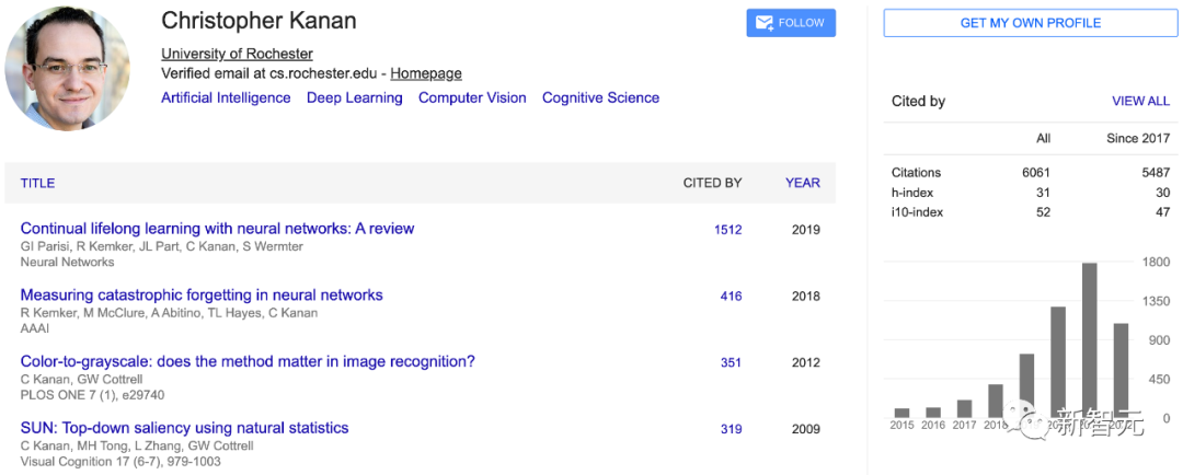 Christopher Kanan是罗切斯特大学计算机科学的终身副教授。主要的工作方向是深度学习的基础研究,包括持续学习,人工智能的偏见,医学计算机视觉,以及语言引导的场景理解。