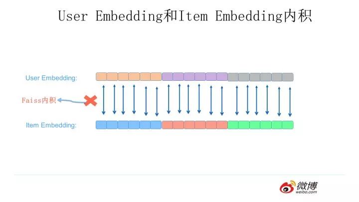 如果用上述方法做FFM召回模型,有可能被拉平的用户embedding以及物品embedding长度太长,这会导致Faiss提取速度变慢,以致这个方法因为速度太慢而变得不可行。那么一种比较直接的提速想法就是:把太长的用户embedding打断成连续片段,物品embedding也相应地打断,同一个物品的embedding片段分别存在不同的Faiss数据库中,这样由于减少了embedding的长度,所以会极大加快Faiss的提取速度。