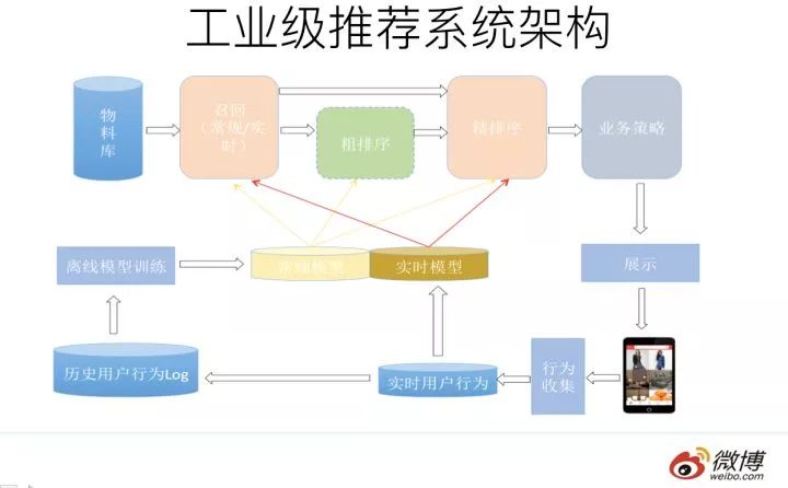 因为粗排是可选的,对于大多数推荐系统来说,通常在线部分的主体分为两个阶段就够,第一个阶段是召回,第二个阶段是排序。因为个性化推荐需要给每个用户展现不同的信息流或者物品流,而对于每个用户来说,可供推荐的物品,在具备一定规模的公司里,是百万到千万级别,甚至上亿。所以对于每一个用户,如果对于千万级别物品都使用先进的模型挨个进行排序打分,明显速度上是算不过来的,资源投入考虑这么做也不划算。从这里可以看出,召回阶段的主要职责是:从千万量级的候选物品里,采取简单模型将推荐物品候选集合快速筛减到千级别甚至百级别,这样将候选集合数量降下来,之后在排序阶段就可以上一些复杂模型,细致地对候选集进行个性化排序。
