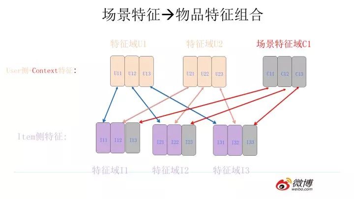 问题二:我们需要考虑上下文特征C和用户特征U之间的特征组合,也需要考虑C和物品特征I之间的特征组合。上下文特征有时是非常强的特征。那么,如何做能够将这两对特征组合考虑进来呢?