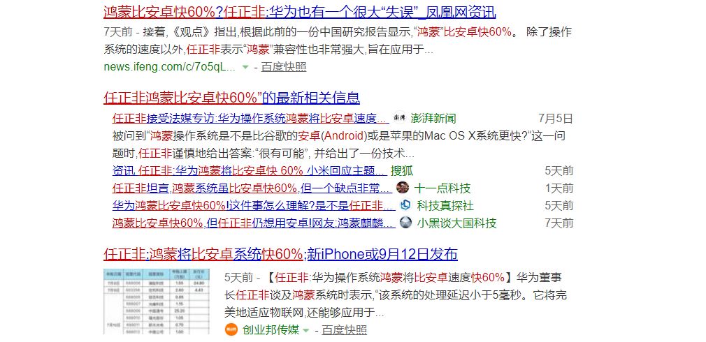 同时我们发现,近期有大量报道指出任正非“亲口”宣布“鸿蒙比安卓快60%”,这显然与此前任正非接受采访时的口吻与口风不相符,并引发我们的质疑。