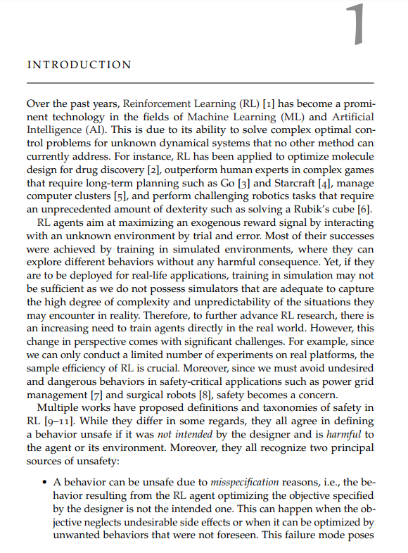 近年来,RL的显著成就使其在人工智能研究的前沿占有一席之地。最关键的是,这些结果大多是在模拟环境中获得的,在模拟环境中,不良行为不会产生有害后果。然而,为了释放RL的全部潜力,我们希望在现实世界中部署它。虽然这扩大了RL有益影响的范围,但也放大了其有害行为的后果。因此,我们必须理解和解决可能导致RL智能体在现实世界中做出潜在破坏性决策的原因。