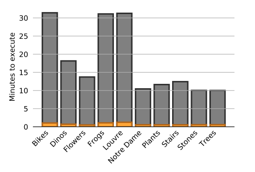 下图中橙色表示是作者的算法的运行时间,灰色表示Ha的算法的运行时间。