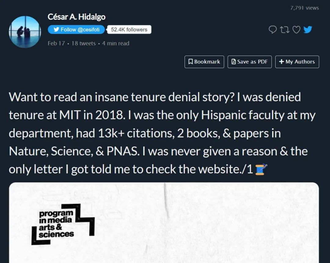 2018 年,我在 MIT 申请 tenure 被拒。但当时我已在 Nature、Science 和 PNAS 上发表过论文,且每本至少 2 篇以上,引用超过 13000 次。