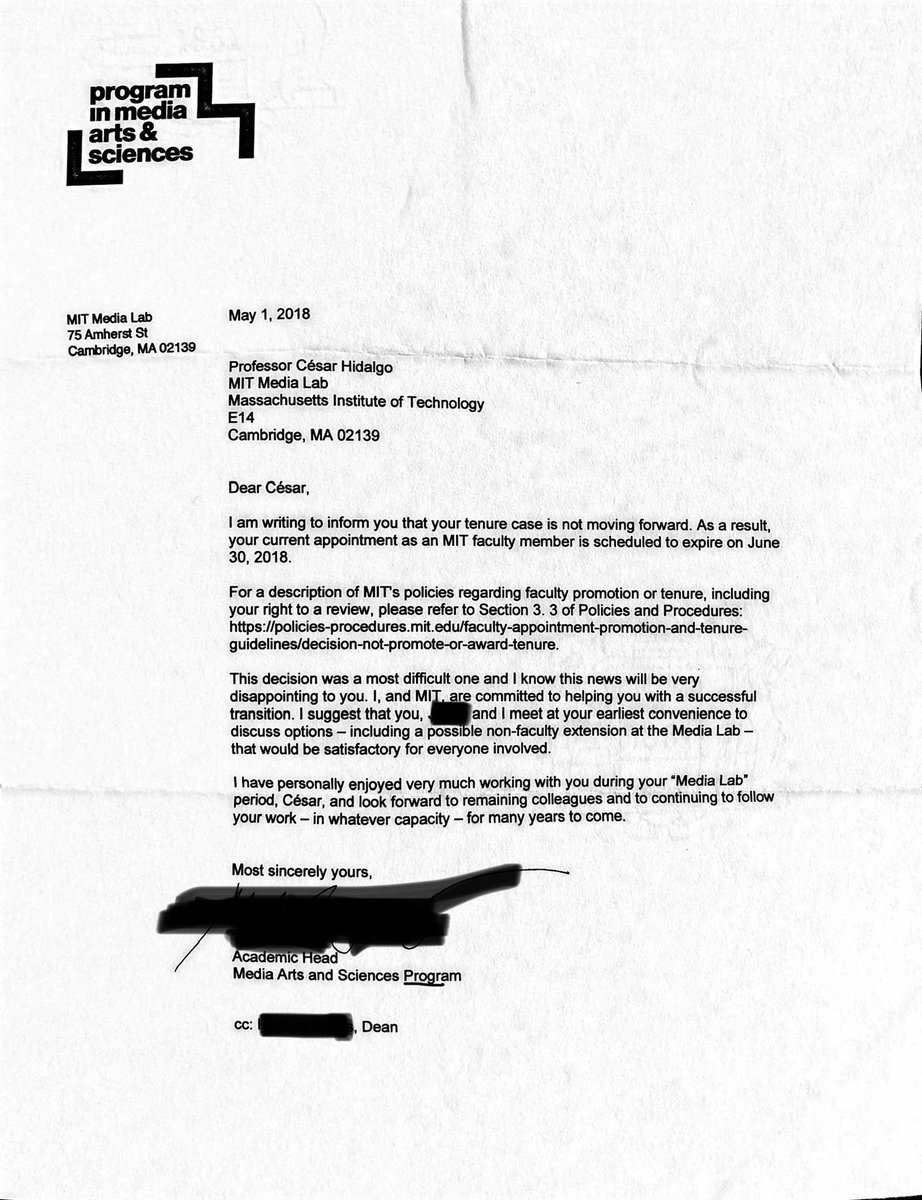 我终于得到了「答案」。麻省理工学院的校长告诉我,申请 tenure 与研究、学术生产力或取得的成绩都无关。这只关乎办公室政治和系里的喜好。校长告诉我这些并没有恶意,我认为他是善良和诚实的。所以我继续问他我是否应该上诉。