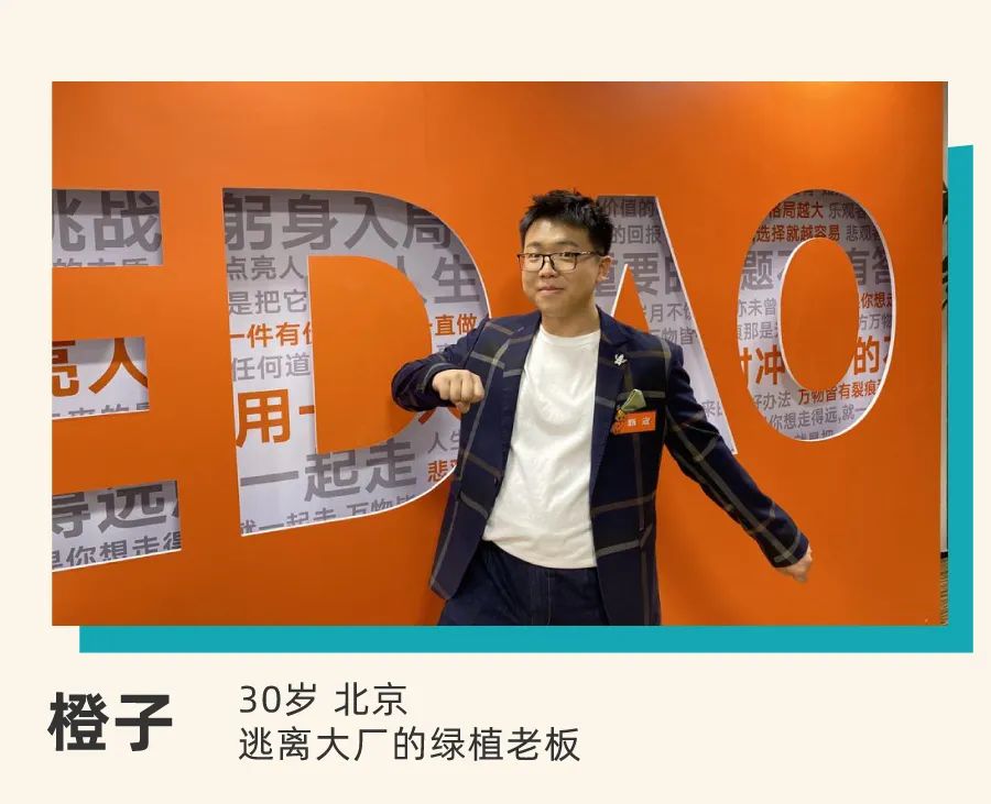 我叫橙子,去年从一家互联网公司辞职,目前开了一家自己的植物工作室。现在每天的状态就是“搞搞植物、种种地、玩玩泥巴”。