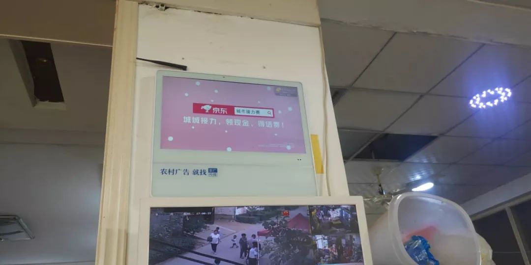 新入驻的电子广告屏幕是一家叫农广传媒的创业公司投放的。这块22寸的屏上,一共有12个广告位,每个广告位的播放时间是15秒,其中部分广告位被花生好车、BOSS直聘、福田汽车等全国性品牌占据,剩下的被本地相亲交友平台、教育培训机构占据。近来,随着618战事打响,淘宝、苏宁、京东这样的电商平台也纷纷入驻。