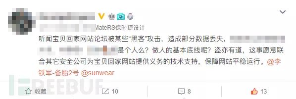 参考上次易到遭遇黑客攻击后,周鸿祎表示愿意提供安全技术协助。笔者估计在这个消息持续发酵之后,会有不少安全公司主动联系宝贝回家网站运营者,无偿为其提供技术支持,以便论坛能够尽快回复访问。