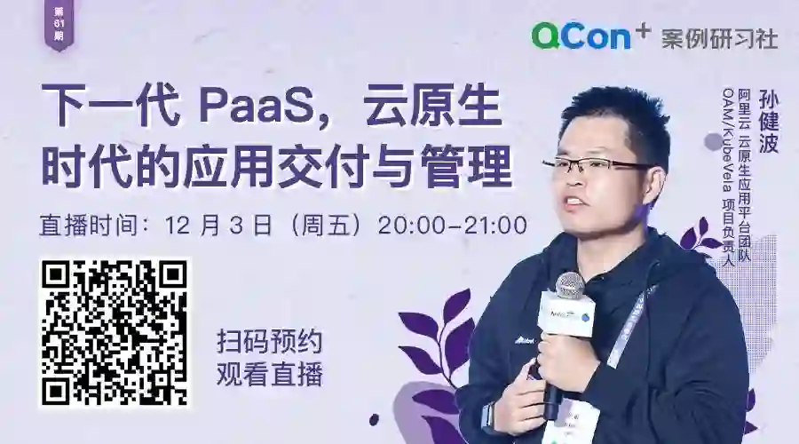 本周五晚 8 点,阿里云云原生应用平台团队 OAM/KubeVela 项目负责人孙健波将直播分享「下一代 PaaS,云原生时代的应用交付与管理」,解析云原生应用交付和管理面临的主要问题和挑战。