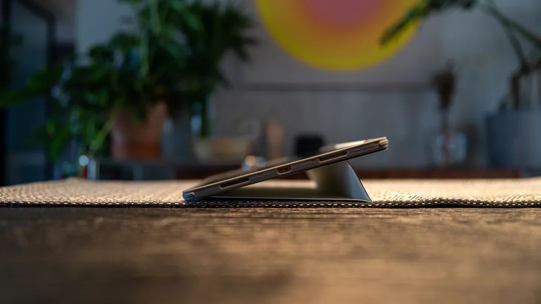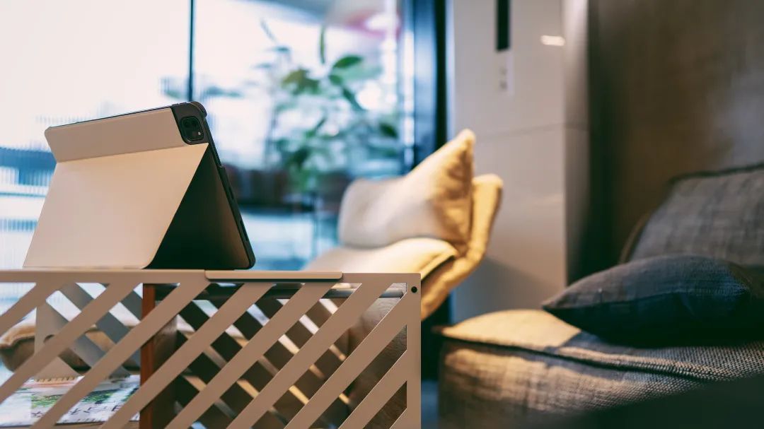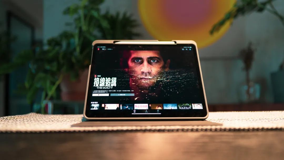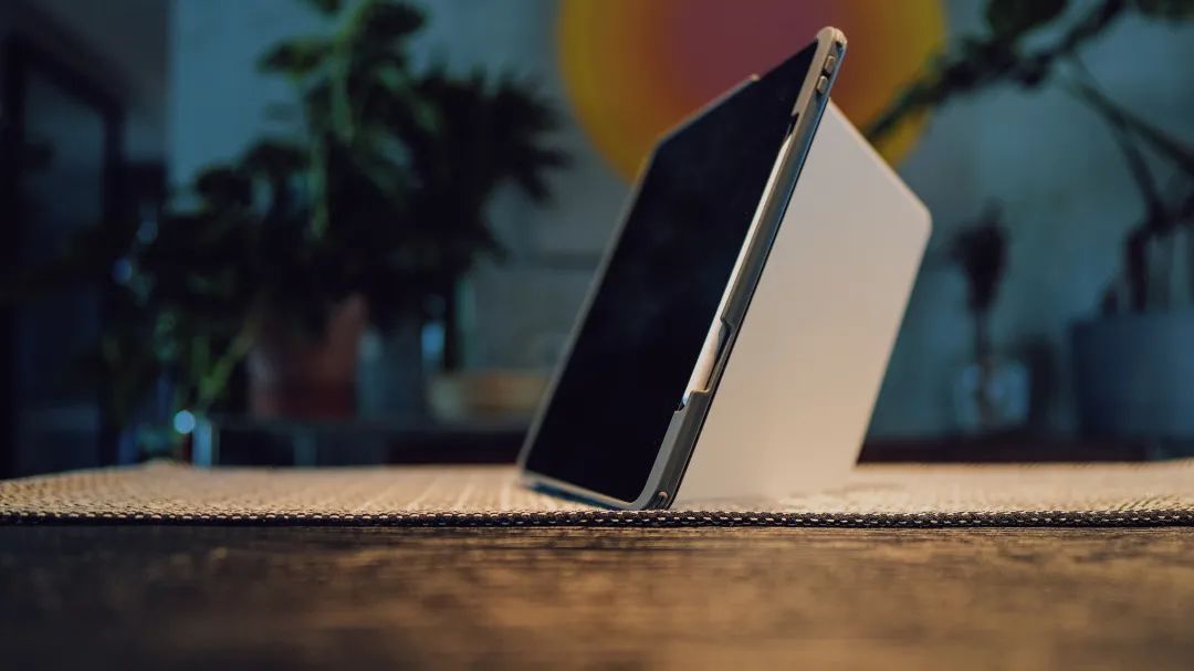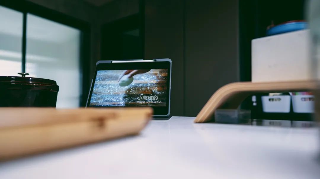 我们编辑部时常吐槽飞书的产品经理一定只用 iPad Pro 办公,因为它在 iPad Pro 上有着无与伦比的响应速度、流畅度和交互——对比 macOS,而飞书之余它也有着更好的收音麦克风和降噪,所以其实我们好几个编辑都会选择用 iPad Pro 来开早会,包括工作中偶尔需要与客户聊天或者跟一些不是那么重要需要全神贯注追踪的新品发布会,这是我使用 iPad Pro 的典型场景之一。如果是用上妙控键盘或者其它带有键控 iPad Pro 保护壳,它与你是有距离的,而这个距离不止是物理上的数值,更是一种体验上的割裂感——我不再是使用 iPad Pro 配合我正常的工作,而是繁琐的用上了两个设备在做明明没有它也能做好的事儿。妙控键盘而 tomtoc 新款 iPad Pro 防摔保护壳不仅仅是免掉了一个键控的距离,它是给使用者配置了一块可以无极调节的区域,通过与面盖反面的摩擦阻力实现 30-60° 的调节区域,不像是妙控键盘那种更多是可视角度的调节,它更能给你一种远近调节的使用体验。tomtoc 新款 iPad Pro 防摔保护壳角度的无级调节而它因为是结合面盖放置调节,更适合在各种平面上调整合适的角度后看剧,除非平面垮掉,不然几乎永远不会倾倒,如果你曾使用过妙控键盘,那么你应该明白我在说什么。搁岛台上边学边做新菜式