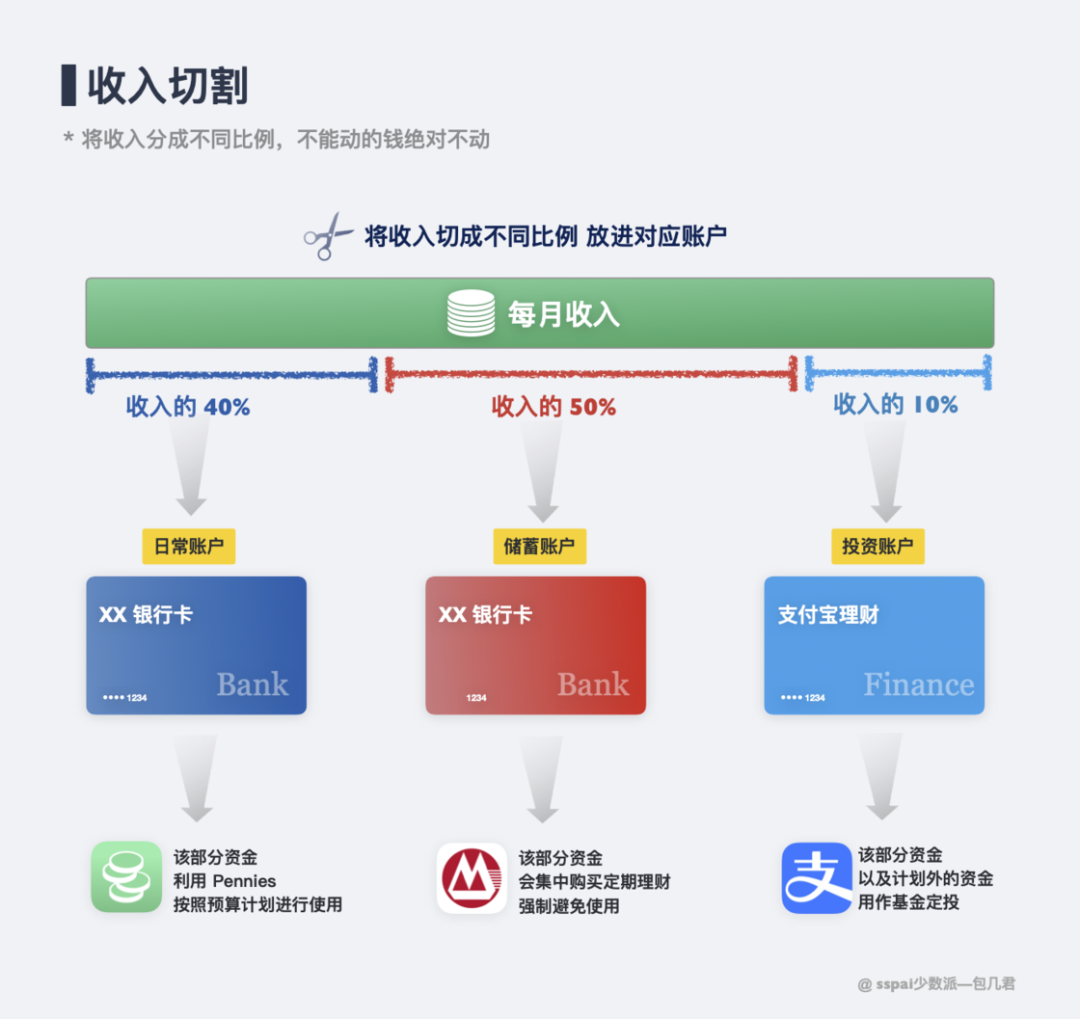 收入切割:把收入切割成几个部分,不能动的钱无论如何也不能动