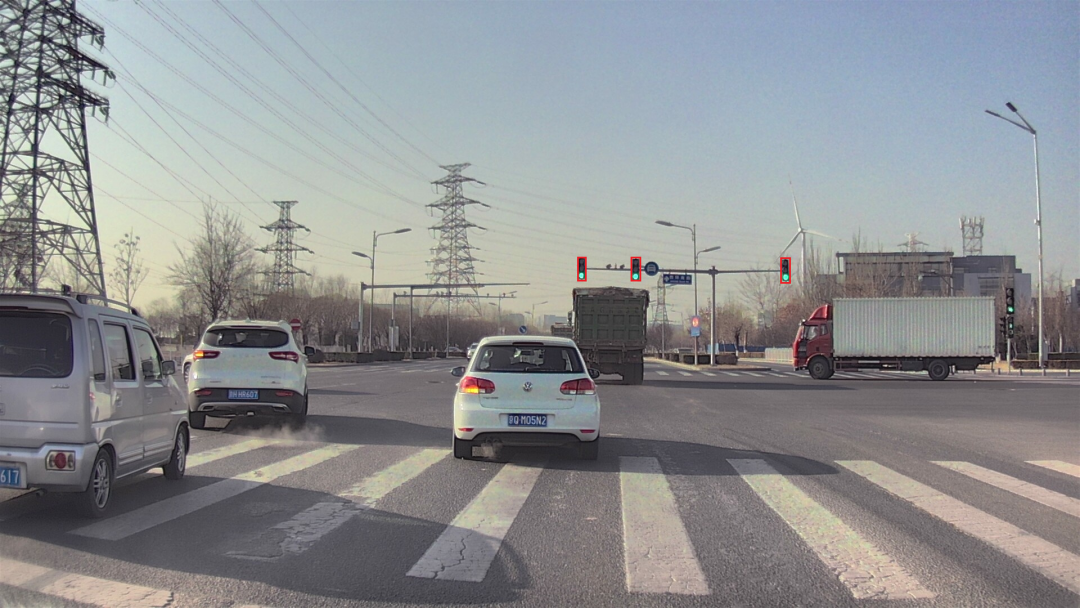 基于自然驾驶采集的图像数据,评价城区不同路口红绿灯像素位置的检测与红绿灯颜色的识别。红绿灯位置检测的输出为红绿灯的二维边界框,红绿灯颜色的识别输出红绿灯的颜色(红、绿、黄、无)。