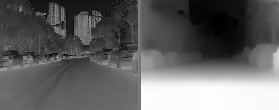 红外图像能突破夜障,增强驾驶员视野,解决夜间驾驶视野受限等问题,同时,红外图像对热源敏感,在行人检测、车辆检测领域具有明显优势。本任务基于红外单目摄像头采集夜间城市普通道路非拥堵路段的驾驶场景的图片数据,对单目图像数据进行深度图估计。