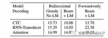 然而,不同的训练目标只允许不同类型的编码器:特别是:1)数量下采样的编码器是影响的重要因素,既训练模型时间,又提高精度(2)只有前向层的编码器对于流解码许可,我们也探讨了这方面的问题。我们相信这些结果可以更小更均匀了。数据集仍应保持在规模上,因此应侧重于趋势而不是优化。