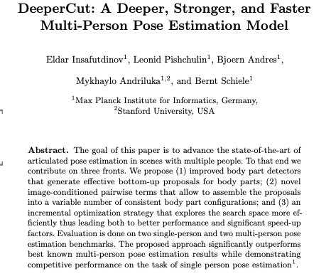 论文名称:DeeperCut: A Deeper, Stronger, and Faster Multi-Person Pose Estimation Model