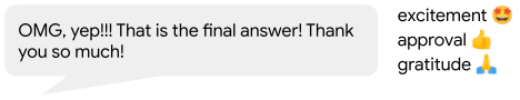 我们在发布 GoEmotions 数据集的同时,还发布了一个详细的教程,演示了使用 GoEmotions 训练神经模型架构(可从 TensorFlow Model Garden 中获取)的过程,并将其应用于根据对话文本推荐表情符号的任务。在 GoEmotions 模型卡中,我们探讨了使用 GoEmotions 建立的模型所具备的其他用途,以及使用数据时的注意事项和限制条件。