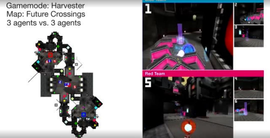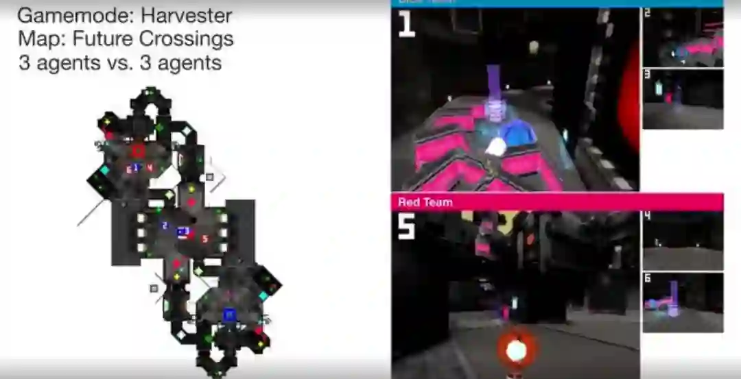从多智能体的视角来说,CTF 要求玩家同时做到与他们的队友通力合作以及与对手的队伍进行对抗,并且还要对它们可能遇到的任何比赛方式都要保持鲁棒性。