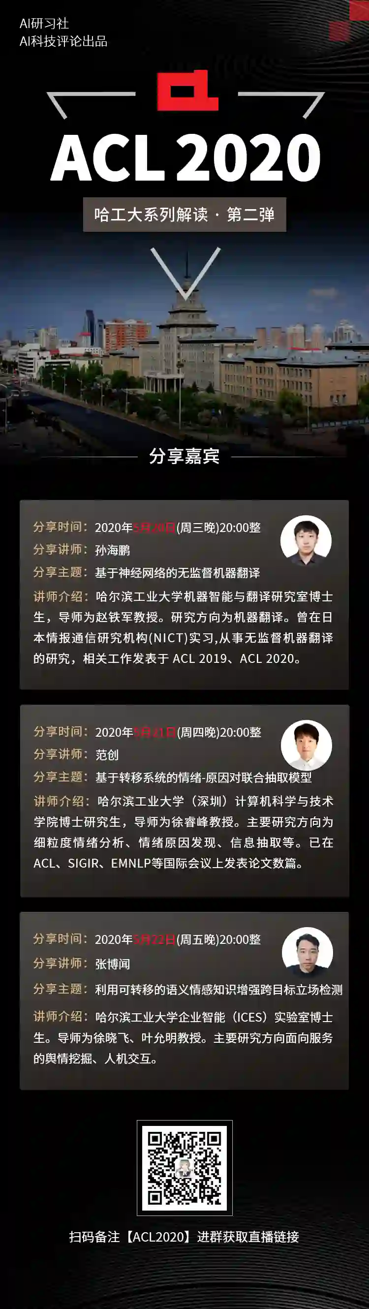 ACL 2020原定于2020年7月5日至10日在美国华盛顿西雅图举行,因新冠肺炎疫情改为线上会议。为促进学术交流,方便国内师生提早了解自然语言处理(NLP)前沿研究,AI 科技评论将推出「ACL 实验室系列论文解读」内容,同时欢迎更多实验室参与分享,敬请期待!