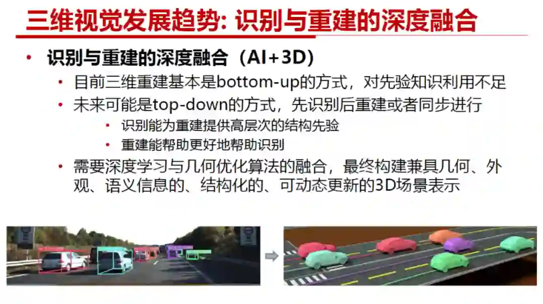 我们讨论五到十年的计算机视觉研究方向,不是指具体的算法,我们十年前也不知道深度学习能达到今天这样的一个高度,我们要讨论到底哪些方向是值得研究的,我自己觉得有三个需要关注的方向: