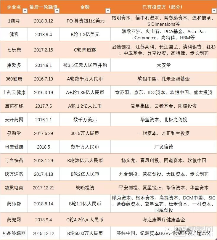 偌大的医药电商市场,资本玩家不少,大一点的是云锋、复星、IDG、经纬、软银、北极光,小一点的基金及个人投资者也有。医药电商既有互联网属性,又有零售属性,线下投入很重要,是个“重”模式。