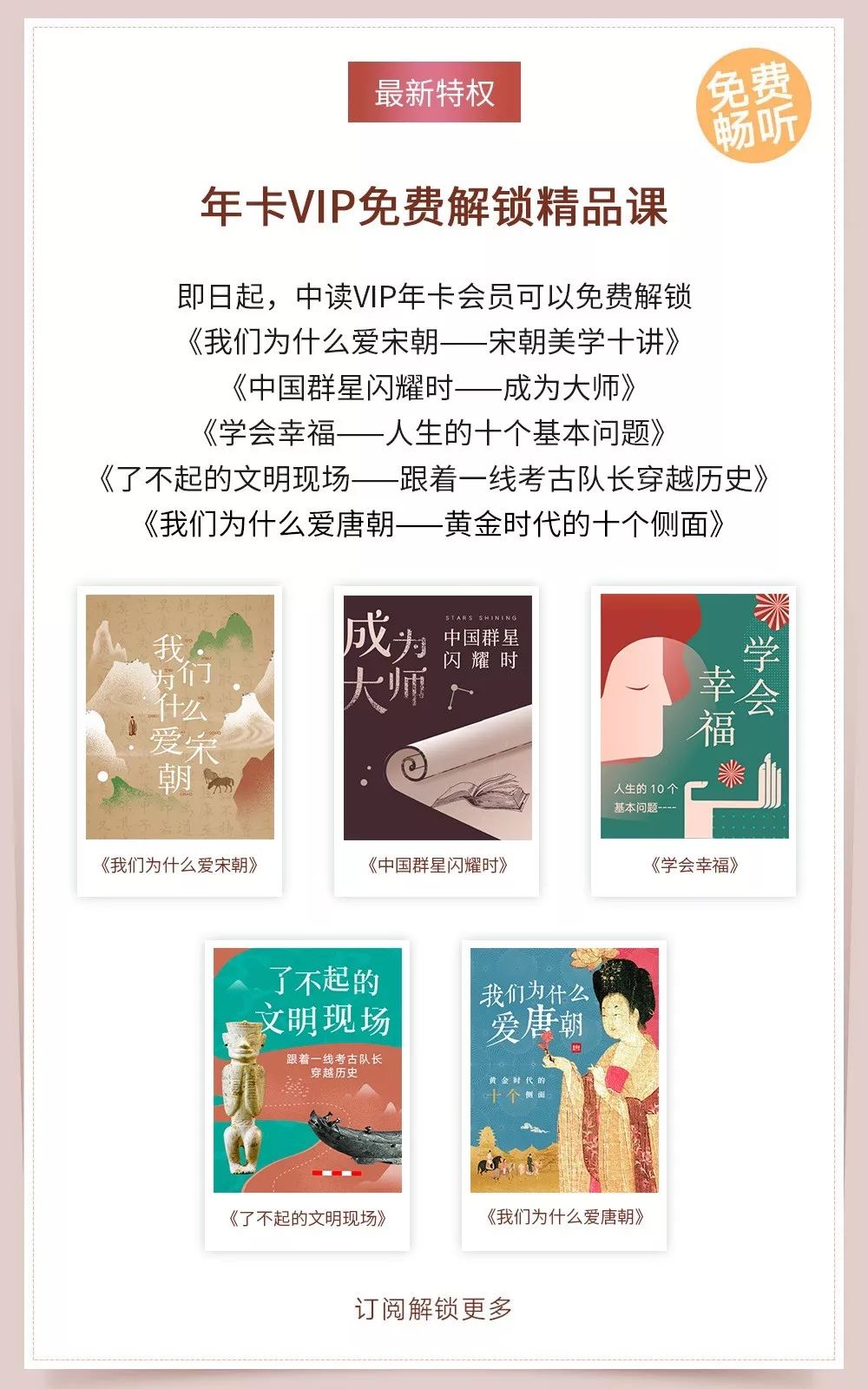 现在加入中读VIP会员,每天持续吸收精华知识,涉猎不同领域的新知卓见,你大脑的思维格栅很快就会贯通起来!