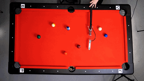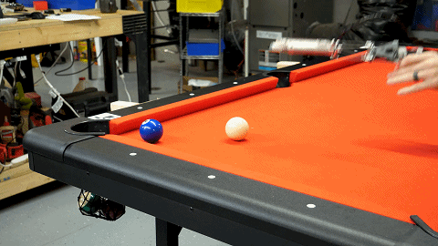 首先,Shane Wighton 将打台球的过程分解为两个步骤:1)确定球的行进路线;2)精准击球,使其按照预想的路线滚入球洞。这也是智能击球系统需要完成的两项任务。